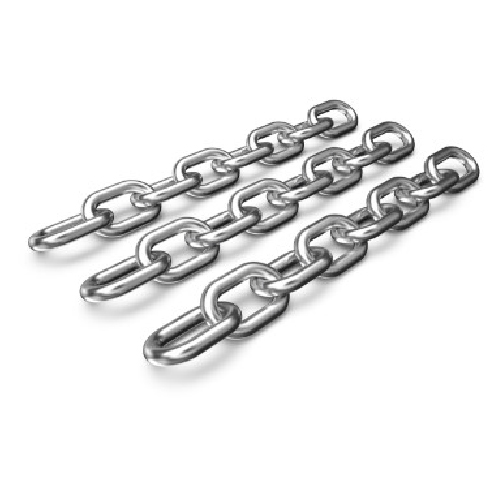 La cadena de eslabón o cadena galvanizada está formada en frio y con eslabones electro soldados, además es probada en su totalidad para cumplir los estándares de resistencia a la ruptura y la torsión.